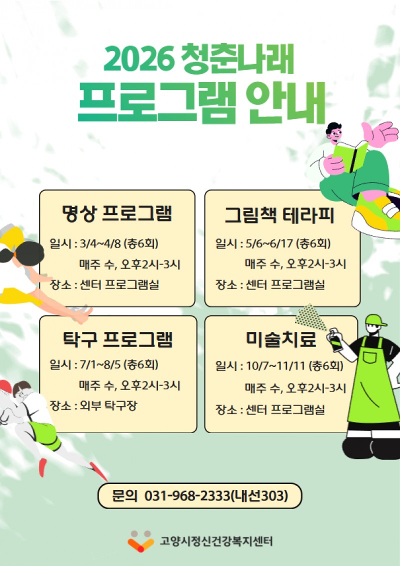 고양시정신건강복지센터, 청년 대상 ‘청춘나래 프로그램’참여자 모집