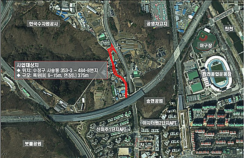 성남시 수정구 사송동 일원 375m 도로 개설 추진