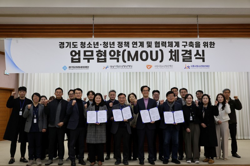 경기도미래세대재단은 12일 옛 경기도청사 신관 4층 대회의실에서 수원·성남·시흥시청소년청년재단과 ‘경기도 청년 정책 연계 및 협력체계 구축 업무협약’을 체결했다.