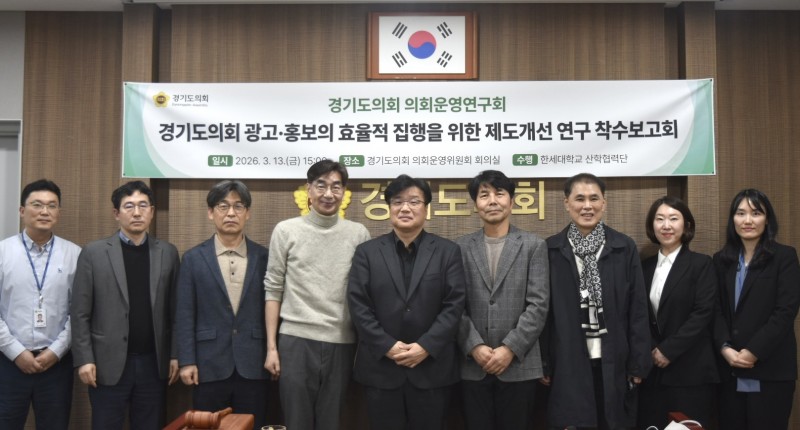경기도의회 의회운영연구회(회장: 양우식 위원장)는 지난 13일(금) 운영위원회 회의실에서 「경기도의회 광고·홍보의 효율적 집행을 위한 제도개선 연구 연구용역」 착수보고회를 개최했다.