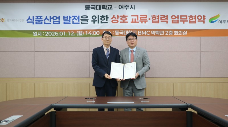 이번 협약은 동국대학교가 보유한 그린바이오 분야의 우수한 연구 역량을 바탕으로 여주시 지역 농산물을 활용한 기능성 농산물 및 건강기능식품 소재 개발을 추진하고, 품질 표준화와 기능성 평가, 기술 지원 등 실질적인 협력 체계를 구축하기 위해 마련됐다.