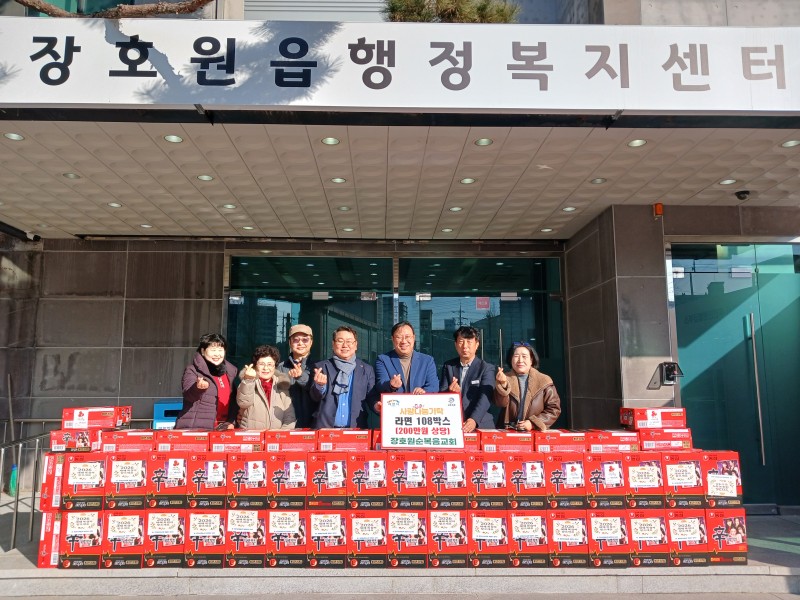 이천시 장호원순복음교회(담임목사 김석수)에서 14일(수)에 장호원읍행정복지센터에 이웃돕기를 위한 라면 108박스(200만원 상당)를 기탁했다.