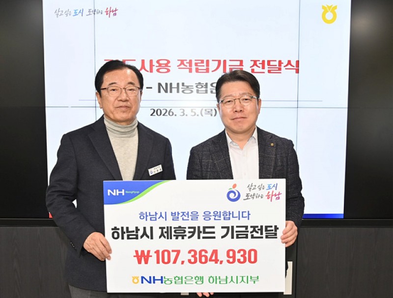 NH농협은행 하남시지부(지부장 이석표)가 5일 제휴카드 사용 적립기금 107,364,930원 하남시에 전달했다고 밝혔다.