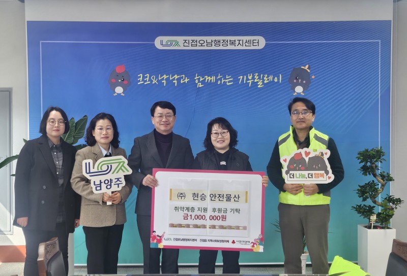 남양주시 현승안전물산, 진접읍 취약계층 위한 후원금 100만 원 전달