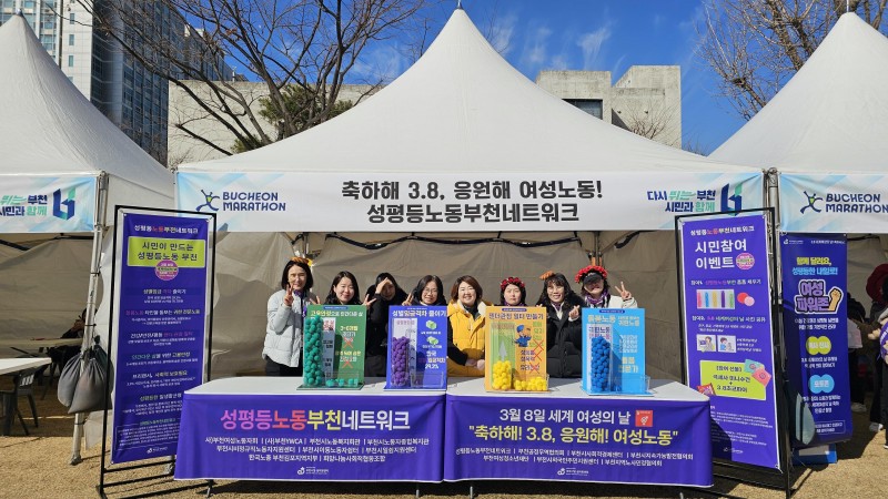 특히 지난 8일, ‘2026 부천국제 10km 로드레이스’의 부대행사가 열린 부천시청 잔디광장에서 ‘성평등노동부천네트워크’는 성평등한 노동환경 조성을 주제로 ‘폼폼 투표’ 체험 이벤트 부스를 운영했다. 이날 행사에는 대회 참가자와 시민 1,300여 명이 방문하여 주요 노동 이슈에 대해 함께 공감하는 등 인식개선에 뜻을 모았다. 특히 많은 시민들이 ‘성별임금격차 해소’, ‘고용안정’의 필요성에 가장 많은 공감을 표했다.