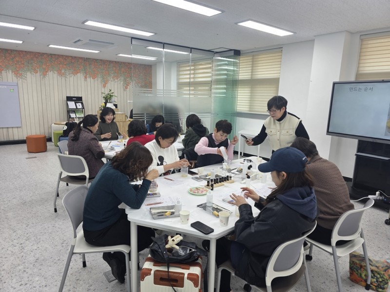 관내 요양보호사, 아이돌보미, 사회복지사 등 돌봄 종사자 10명이 참여했으며, 라온공방 진금숙 대표의 지도로 ‘친환경 천연 화장품 만들기’ 체험형 활동을 진행했다. 참여자들은 천연 재료의 효능을 배우고 피부 자극이 적은 화장품을 제작하며, 이완과 집중의 시간을 가졌다.