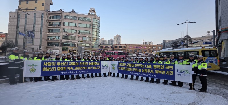 남양주시는 13일 새마을교통봉사대 남양주시지대(대장 나용자)가 금곡삼거리 일원에서 2026년 새해 첫 ‘교통안전문화 정착을 위한 교통안전 캠페인’을 실시했다고 밝혔다.