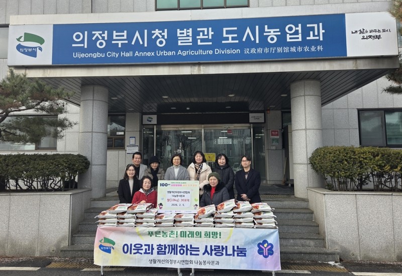 의정부시는 2월 5일 생활개선의정부시연합회(회장 이란희) 소속 나눔봉사분과(분과장 백복례)가 지역 내 취약계층을 돕기 위해 쌀 30포(10kg 단위)를 기부했다고 밝혔다.