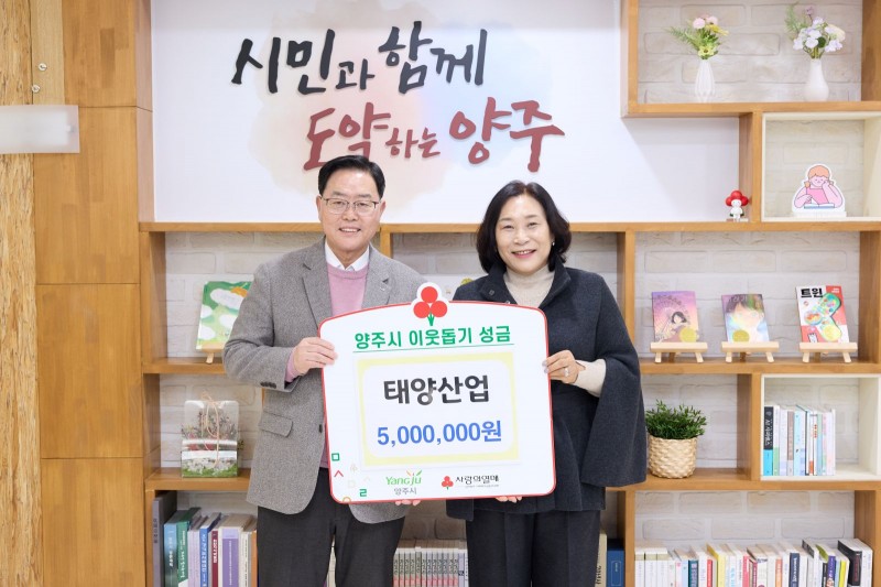 양주시가 지난 5일 태양산업(대표 조현숙)으로부터 이웃돕기 성금 500만 원을 기탁받았다.