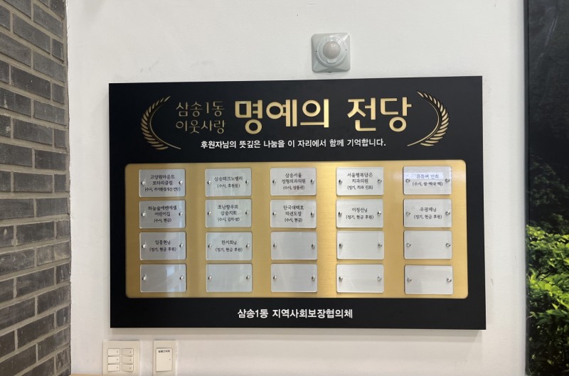고양특례시 덕양구 삼송1동은 기부자에 대한 예우를 강화하고 기부 문화를 확산하기 위해 청사 1층 로비에 ‘명예의 전당’을 설치했다고 밝혔다.