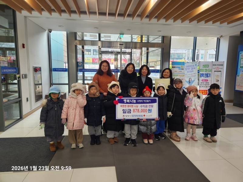 이번 수익금은 2026년 병오년(丙午年) 새해를 맞아 지산하나어린이집이 주최한 나눔 행사에서 원생들과 교직원들이 직접 붕어빵을 만들어 판매해 마련한 것으로, 최근 한파로 어려움을 겪고 있는 지역 주민들을 돕기 위해 기부했다.