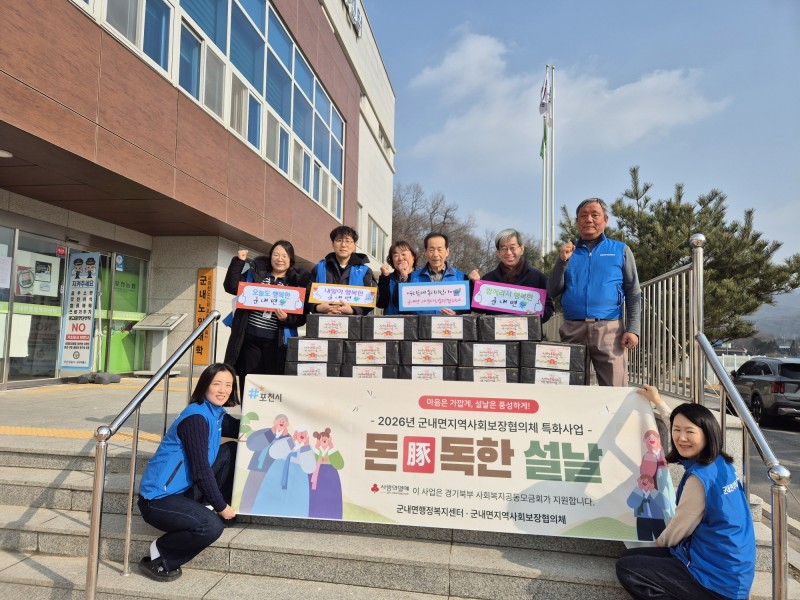 군내면 지역사회보장협의체는 같은 날 관내 취약계층 30가구를 대상으로 명절 특화사업 ‘돈(豚)독한 설날’을 추진했다. 이번 사업은 ‘돈독(敦篤)하다’의 의미를 담아 이웃을 향한 정성과 믿음을 더 두텁게 전하자는 취지로 기획돼, 주민들의 지정기탁금으로 조성된 재원과 경기북부공동모금회의 지원을 받아 진행됐다. 협의체 위원들은 포천이동 돼지갈비(4kg) 세트와 나사모(나눔을 사랑하는 모임)가 후원한 떡국떡, 김치, 계란 등을 포장해 각 가정에 직접 전달하며 안부를 살폈다.