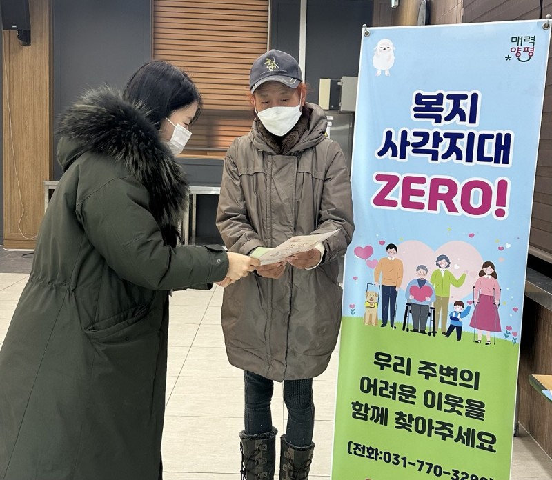 한편, 지평면 복지팀은 연중 상시 운영되는 복지 사각지대 발굴 사업과 자체 점검 사업을 통해 누구도 소외되지 않도록 촘촘한 복지 안전망 구축에 힘쓰고 있다. 복지 지원이나 위기가구 제보 관련 문의는 지평면 복지팀(☎ 031-770-3285)으로 하면 된다.