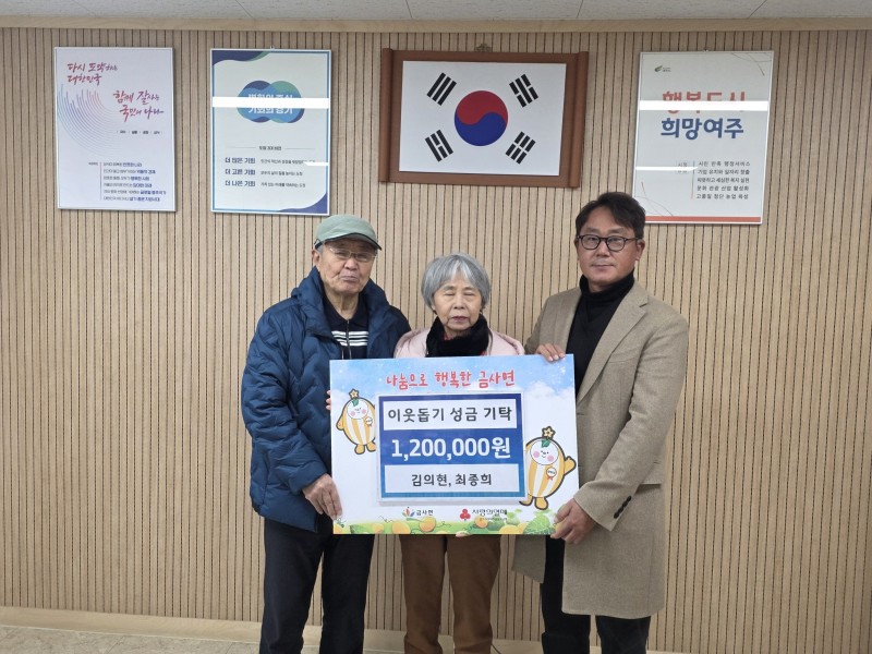 금사면 생활개선회 최종희 회장이 배우자와 함께 지난 24일 여주시 금사면행정복지센터(면장 박거수)를 방문하여 이웃돕기 성금 120만원을 기탁하였다.