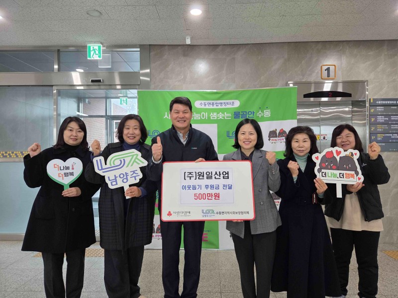 이진춘 수동면장은 “다년간 변함없이 이웃사랑과 나눔을 실천해 온 원일산업에 깊은 감사를 전한다”며 “지역사회와 긴밀히 소통하며 복지 사각지대 해소와 주민 삶의 질 향상에 더욱 힘쓰겠다”고 강조했다.