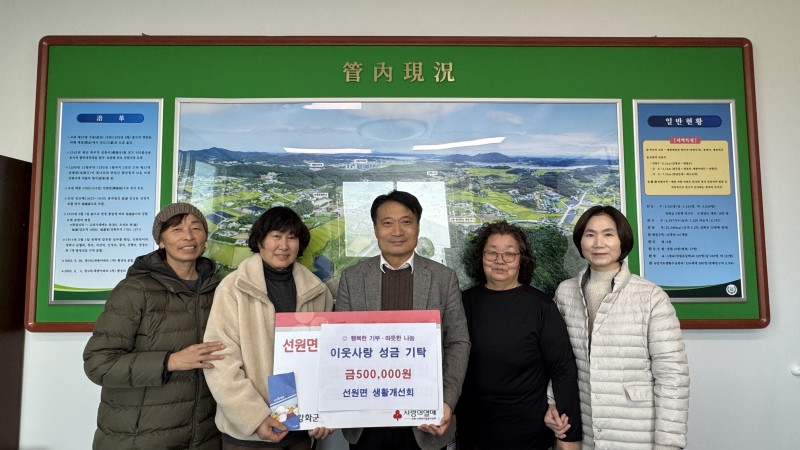 이정실 선원면장은 “연말연시 어려운 이웃을 위해 나눔에 동참해 주셔서 깊이 감사드린다”며, “전달받은 성금은 취약계층을 위해 투명하고 뜻깊게 사용하겠다”고 감사 인사를 전했다.