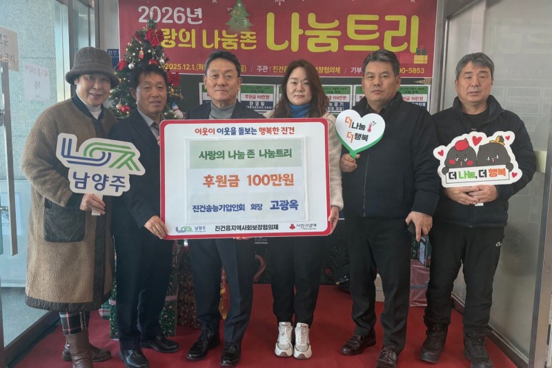 남양주시는 지난 5일 진건송능기업인회가 ‘진건읍, 사랑의 나눔존 나눔트리’ 행사에서 후원금 100만 원을 기탁했다고 7일 밝혔다.
