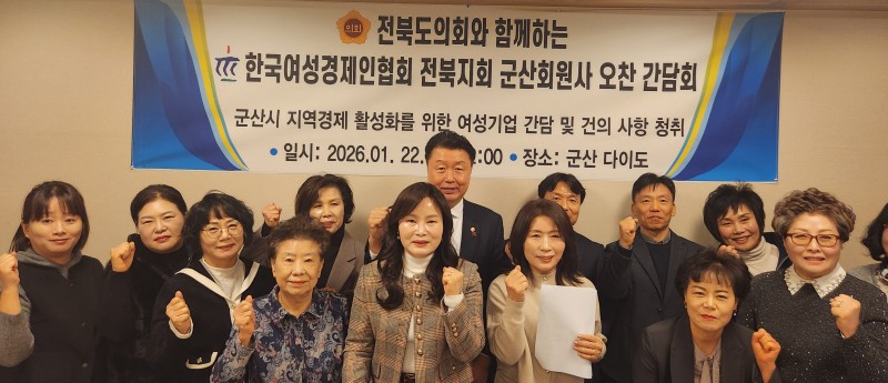 전북도의회 김동구 의원(군산2)은 22일 한국여성경제인협회 전북지회 군산회원사들과 간담회를 개최해 기업 현안 및 애로사항을 청취하는 시간을 가졌다.