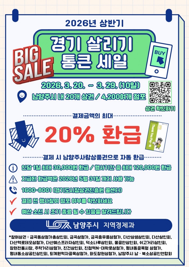 남양주시, ‘2026 상반기 통큰세일’ 개최…최대 20% 페이백 혜택