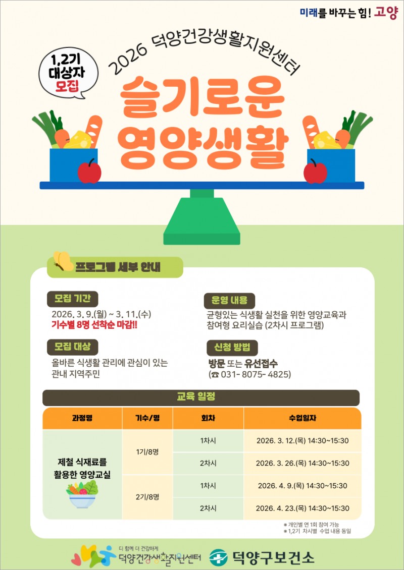 고양시 덕양구보건소 덕양건강생활지원센터, ‘슬기로운 영양생활’1·2기 참여자 모집