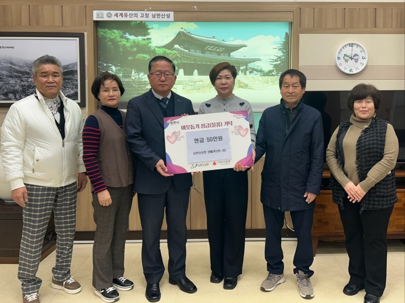 광주시 남한산성면 생활개선회는 22일 남한산성면 행정복지센터를 방문해 이웃돕기 성금 50만 원을 기탁했다.