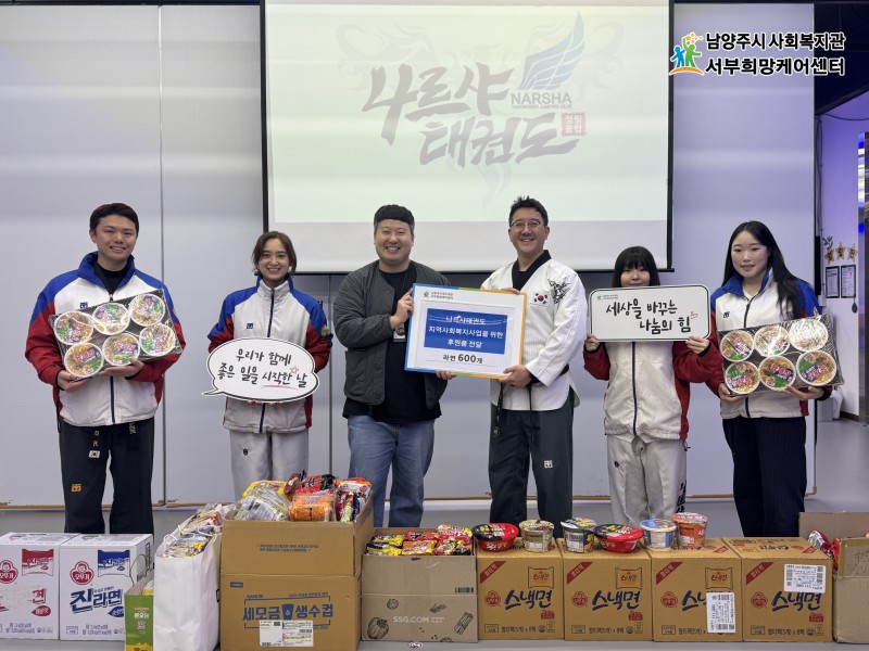이번 후원은 연말을 맞아 나르샤태권도 관원들이 자발적으로 마련한 것으로, 후원 물품은 커뮤니티 공간 ‘서부! 커피 한 잔과 함께라면’을 통해 복지 사각지대에 놓인 저소득 가구와 위기 가정 지원에 활용될 예정이다.